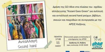 Read moreDetailsΥποδεχόμαστε σήμερα, Πέμπτη 11/05, μεταξύ 14:30-18:00, στον Κοινωνικό Χώρο Ανταλλαγής και Επανάχρησης τις νέες και τους νέους του Σχεδίου Αλληλεγγύης «Kozani Goes Green», που υποστηρίζει η Go Alive, σε μια...