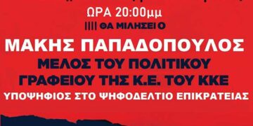 Read moreDetailsΣας ενημερώνουμε ότι η προγραμματισμένη για σήμερα Πέμπτη και ώρα 20:00 κεντρική προεκλογική συγκέντρωση του ΚΚΕ στην Πτολεμαΐδα με ομιλητη τον Μάκη Παπαδόπουλο, μέλος του ΠΓ της ΚΕ του ΚΚΕ, μεταφέρεται λόγω...