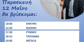 Read moreDetailsΗ υπ. Βουλευτής ΣΥΡΙΖΑ Π.Σ. Π.Ε. Κοζάνης κ. Καλλιόπη Βέττα, αύριο 12/5, θα επισκεφτεί το απόγευμα την Μεταμόρφωση, την Ξηρολίμνη, την Σκήτη, τον Ανθότοπο, τα Αλωνάκια, την Καλαμιά και το Βατερό.