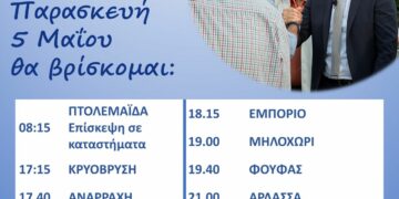 Η υπ. Βουλευτής ΣΥΡΙΖΑ Π.Σ. Π.Ε. Κοζάνης κ. Καλλιόπη Βέττα θα επισκεφθεί σήμερα το Μικρόκαστρο (18:30) και το Καλονέρι (19:00), ενώ θα μιλήσει σε εκδήλωση στην Σιάτιστα, στις 19:30, στο...