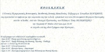 Read moreDetailsΤην προσεχή Κυριακή (07-05-2023) και ώρα 10:30 σε πάροδο επί της οδού Γράμμου, στην Καστοριά, πρόκειται να πραγματοποιηθούν, από τον Υπουργό Προστασίας του Πολίτη κ. Τάκη ΘΕΟΔΩΡΙΚΑΚΟ, τα εγκαίνια του...
