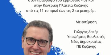 Read moreDetailsΠολιτική εκδήλωση θα πραγματοποιήσει ο Βουλευτής Ν. Κοζάνης Στάθης Κωνσταντινίδης, το Σάββατο 6 Μαΐου στις 7 μ.μ., στο ξενοδοχείο Ιωάννου στην Πτολεμαΐδα.