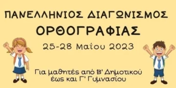 Read moreDetailsΟ Πανελλήνιος Διαγωνισμός Ορθογραφίας 2023 θα διεξαχθεί διαδικτυακά από 25 έως 28 Μαΐου 2023 και αφορά μαθητές από Β' Δημοτικού έως και Γ' Γυμνασίου. Το λεξιλόγιο που εξετάζεται (και ο...