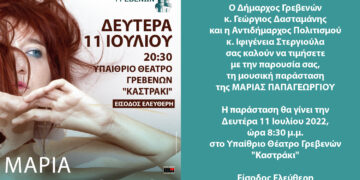 Read moreDetailsΣτο πλαίσιο των θερινών πολιτιστικών εκδηλώσεων του Δήμου Γρεβενών “Πολιτιστικό Καλοκαίρι 2022”, η Δημοτική Αρχή προσκαλεί όλες και όλους να τιμήσουν με την παρουσία τους την ξεχωριστή Γρεβενιώτισσα καλλιτέχνιδα Μαρία...