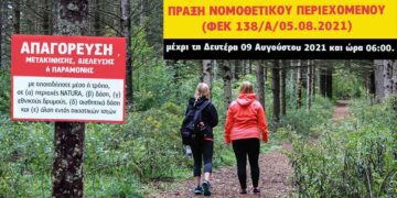 Read moreDetailsΣας ενημερώνουμε ότι στις 5/8/2021 εκδόθηκε Πράξη Νομοθετικού Περιεχομένου με την οποία απαγορεύεται στο σύνολο της επικράτειας οποιαδήποτε μετακίνηση, διέλευση ή παραμονή σε δάση, εθνικούς δρυμούς και άλση, επί ποινή...