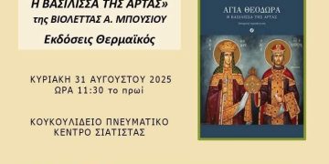 Read moreDetails- Παρουσίαση Βιβλίου στη Σιάτιστα «ΑΓΙΑ ΘΕΟΔΩΡΑ Η ΒΑΣΙΛΙΣΣΑ ΤΗΣ ΑΡΤΑΣ» της Βιολέτας Α. Μπούσιου Για το Βιβλίο θα μιλήσουν οι: κ.κ. Αθανάσιος Σεβασμιότατος Μητροπολίτης Σισανίου και Σιατίστης Θωμάς Θεοδωρόπουλος...