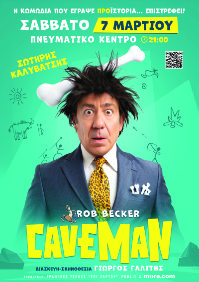 Το παγκόσμιο φαινόμενο CAVEMAN – η πιο επιτυχημένη κωμωδία για της σχέσεις των δύο φύλων- είναι εδώ, με πολύ γέλιο, αυτοσαρκασμό, συγκίνηση, χορό, τραγούδι, μπαλέτα, λιοντάρια, κροκοδείλους, ένα μοναδικό υπερθέαμα με χιλιάδες κομπάρσους και προϊστορικές αλήθειες που σπάνε κόκαλα (μαμούθ)!