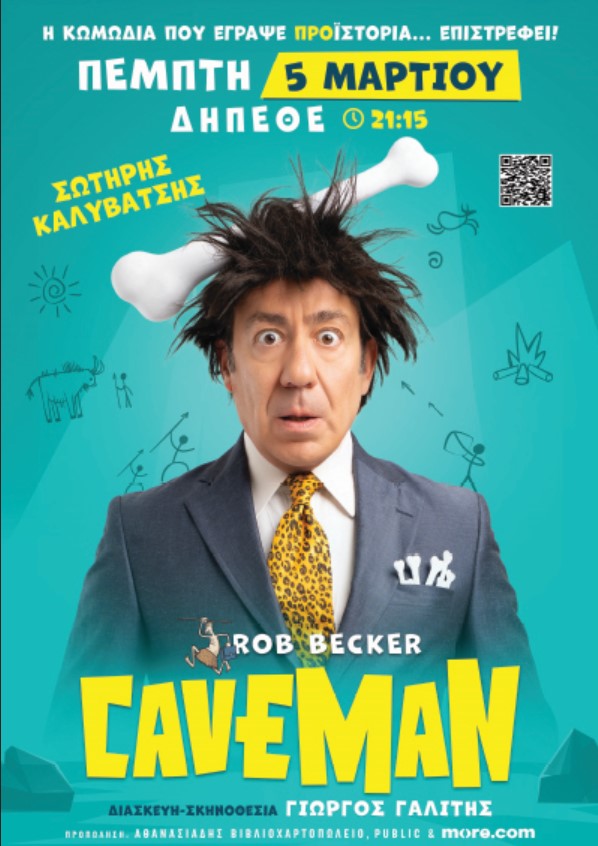 Ο Σωτήρης Καλυβάτσης φοράει προβιά (γνωστού οίκου μόδας) και ανεβαίνει στη θεατρική σκηνή, σε ΝΕΑ διασκευή του Γιώργου Γαλίτη, για να γίνει ο σύγχρονος CAVEMAN: ο άνθρωπος των σπηλαίων της διπλανής πόρτας, ένας πρωτόγονος με Wi-Fi, τηλεκοντρόλ και πιστωτική! Είναι έτοιμος να αποδείξει ότι το αιώνιο μπρα-ντε-φερ μεταξύ άντρα και γυναίκας ξεκίνησε πολύ πριν ανακαλύψουμε το delivery, το Tik-Tok και το γάλα αμυγδάλου.