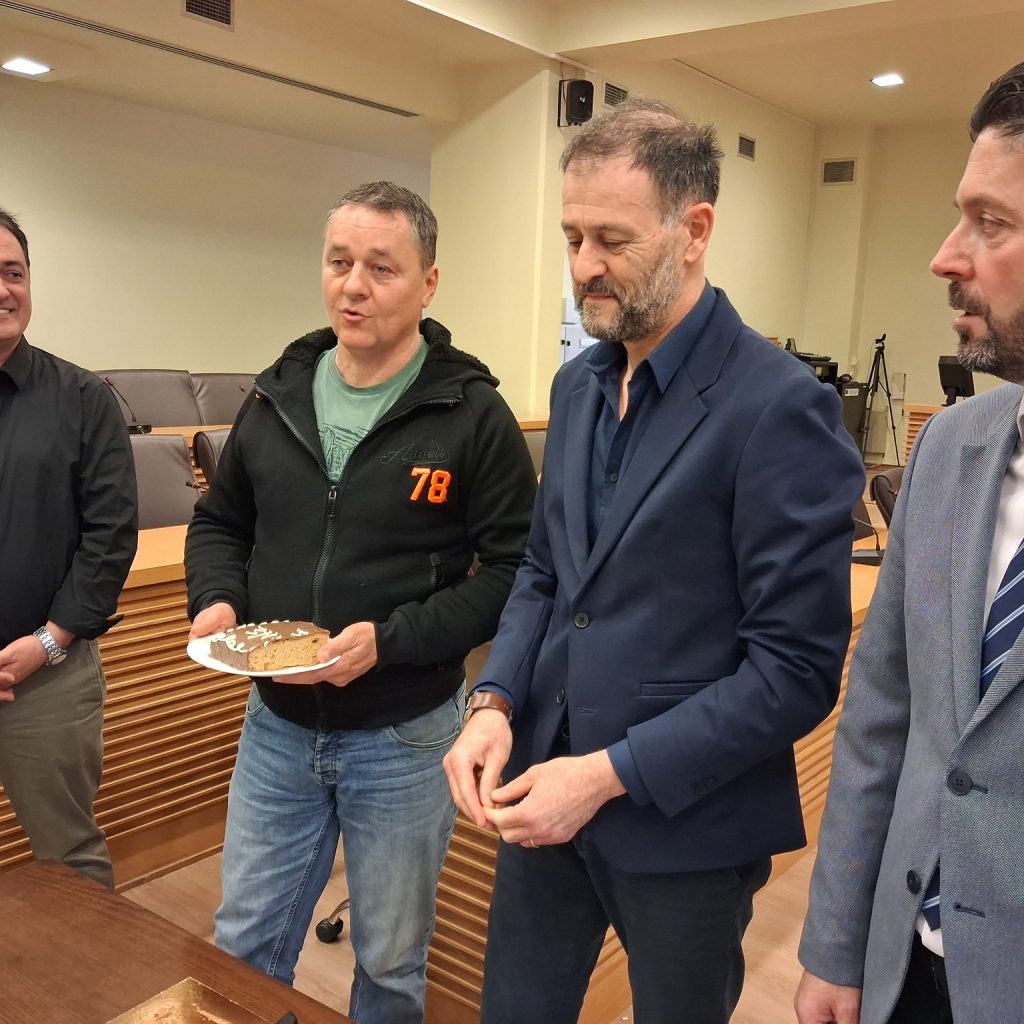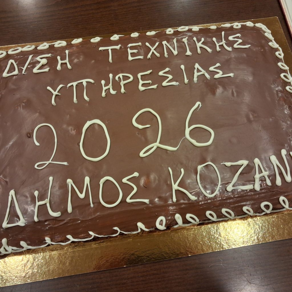 Τη βασιλόπιτά της έκοψε το μεσημέρι της Τετάρτης 4 Φεβρουαρίου 2026, η Διεύθυνση Τεχνικών Υπηρεσιών του Δήμου Κοζάνης στην Αίθουσα Κοβεντάρειο,με πολλές ευχές για μια καλή χρονιά γεμάτη υγεία και δημιουργία, παρουσία του Δημάρχου Γιάννη Κοκκαλιάρη, του αρμόδιου Αντιδημάρχου Κώστα Βόμβα, του Προϊσταμένου Μιχάλη Πεχλιβανίδη και των εργαζομένων της Υπηρεσίας.