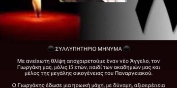 Πένθος και οδύνη στο Άργος Ορεστικό για τον 15χρονο Γιωργάκη Ολοκτσίδη, ο οποίος έφυγε από τη ζωή, αφού πάλεψε για...