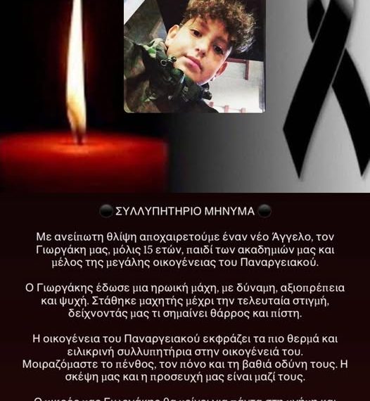 Kozanimedia: Πένθος στο Άργος Ορεστικό για τον 15χρονο Γιωργάκη-Το συλλυπητήριο μήνυμα της ομάδας του Παναργειακού