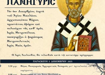 Ἡ πόλις τῆς Κοζάνης λαμπρῶς πανηγυρίζουσα ἐπὶ τῇ ἱερᾷ μνήμῃ τοῦ Ἁγίου Νικολάου, πολιούχου, προστάτου καὶ ἐφόρου αὐτῆς, καλεῖ εἰς πάνδημον ἑορτασμὸν ἅπαντα τὸν εὐσεβῆν λαόν της συμφώνως τῷ κάτωθι προγράμματι: