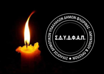 Ο Σύλλογος Δημοτικών Υπαλλήλων Δήμων Φλώρινας, Αμυνταίου και Πρεσπών εκφράζει τη βαθύτατη θλίψη του για την απώλεια του αγαπημένου παιδιού...