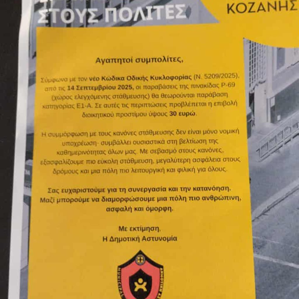 Πλέον, και η Δημοτική Αστυνομία Κοζάνης καλείται να εφαρμόσει τη νέα απόφαση, αρχής γενομένης από αύριο, Τετάρτη 17 Σεπτεμβρίου, καθώς αρχικά, ενημέρωσε τους δημότες και άφησε δυο ημέρες “περιθώριο” πριν ξεκινήσει τους ελέγχους.