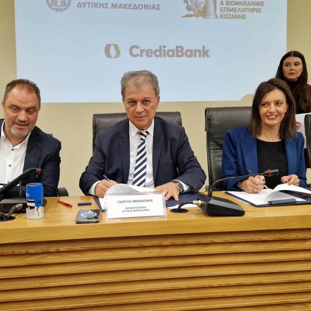 Η CrediaBank, η Περιφέρεια και τα Επιμελητήρια Δυτικής Μακεδονίας υπέγραψαν Μνημόνιο Συνεργασίας με στόχο τη στήριξη της βιώσιμης επιχειρηματικότητας, την είσοδο των τοπικών επιχειρήσεων στη Δίκαιη Αναπτυξιακή Μετάβαση και την προσαρμογή των πολιτών στη νέα εποχή.