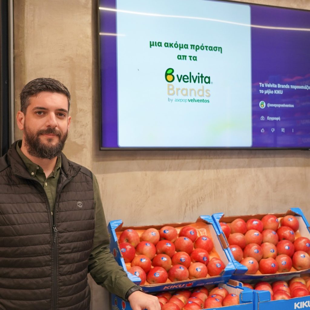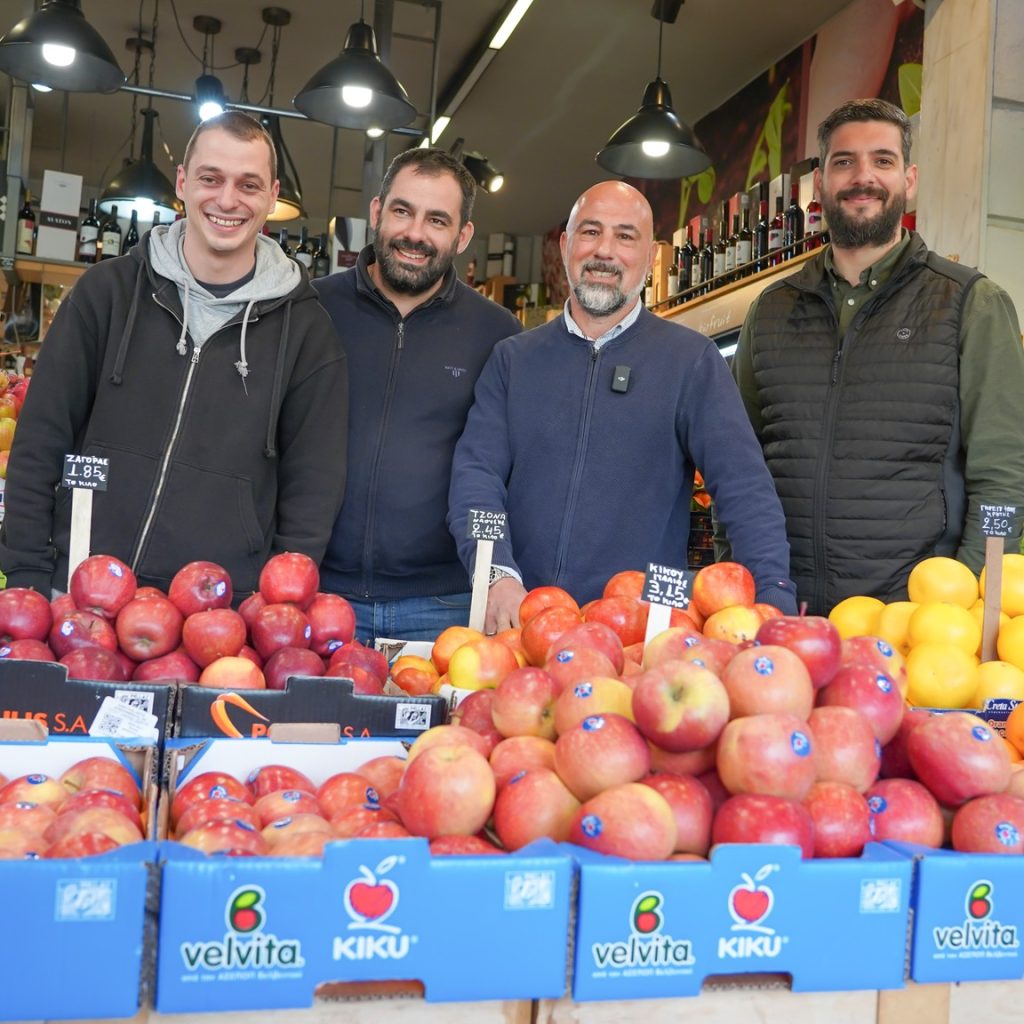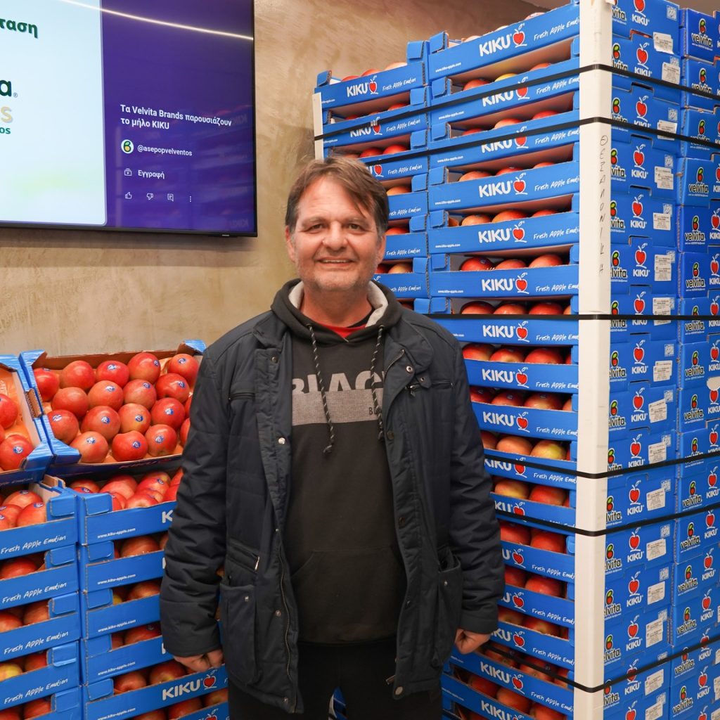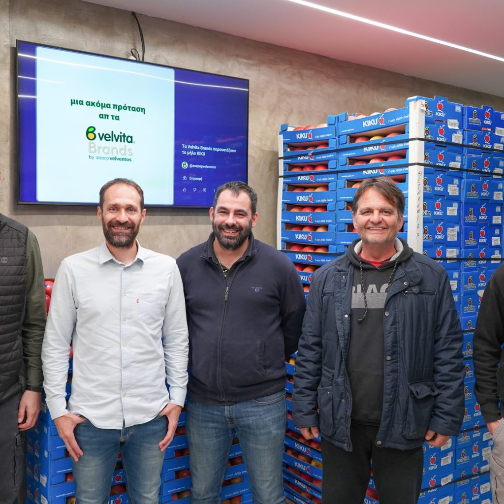 Μαζί με τον Γενικό Διευθυντή Ευθύμιο Μπαλάνη και τα στελέχη της ομάδας πωλήσεων Νίκο Τσιτσιόκα, Παναγιώτη Καραβαγγέλα και στεφανος Σαραντίδη, αναδείχθηκε στο ράφι η αυθεντική γεύση, η τραγανή υφή και η premium ταυτότητα των μήλων KIKU, που διακινούνται στην αγορά απ τα Velvita® Brands.