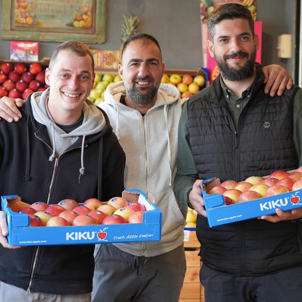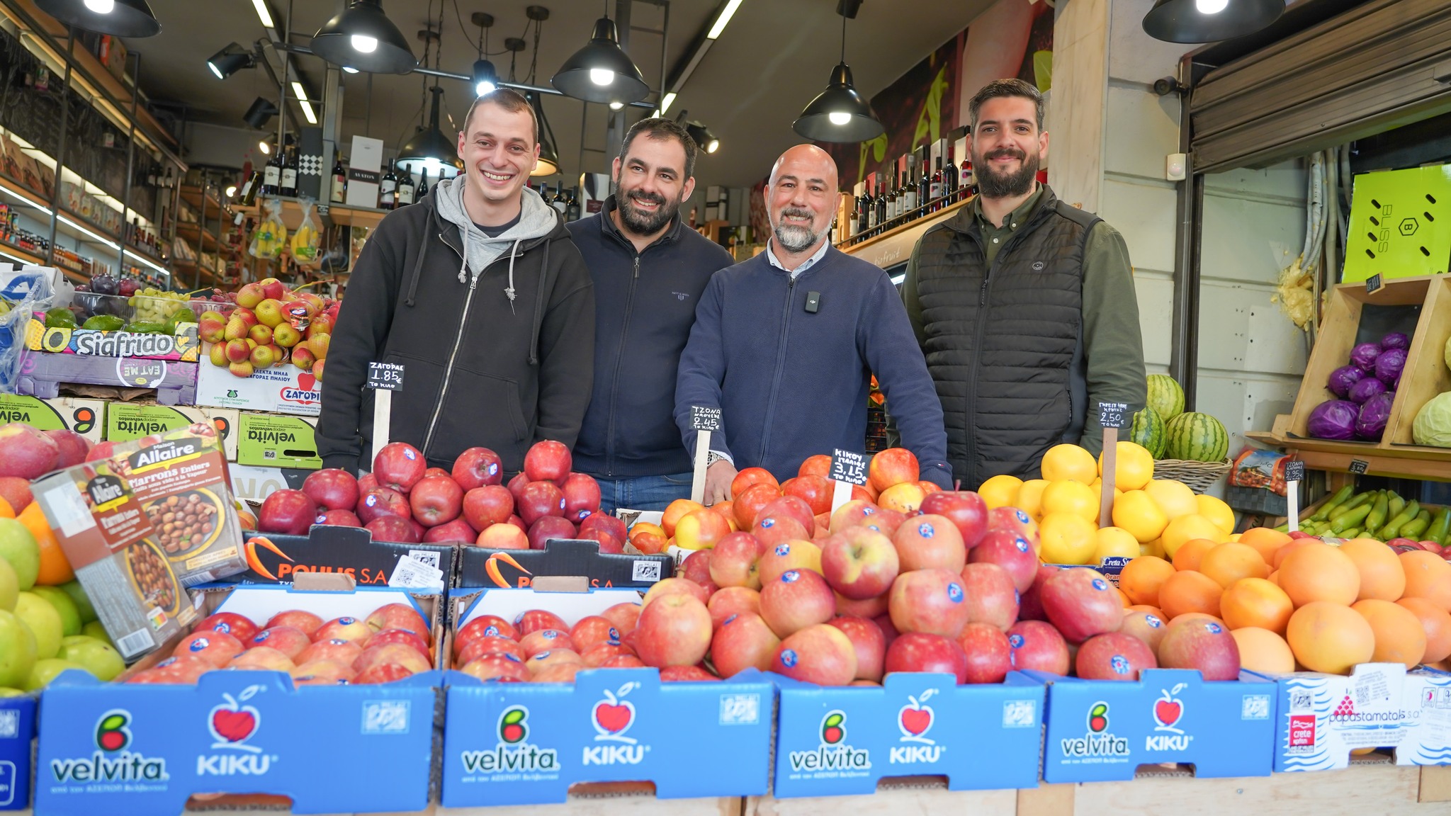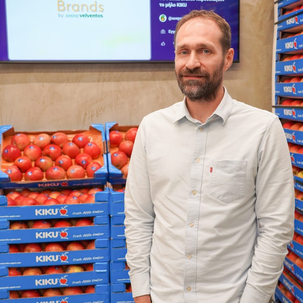 Μαζί με τον Γενικό Διευθυντή Ευθύμιο Μπαλάνη και τα στελέχη της ομάδας πωλήσεων Νίκο Τσιτσιόκα, Παναγιώτη Καραβαγγέλα και στεφανος Σαραντίδη, αναδείχθηκε στο ράφι η αυθεντική γεύση, η τραγανή υφή και η premium ταυτότητα των μήλων KIKU, που διακινούνται στην αγορά απ τα Velvita® Brands.