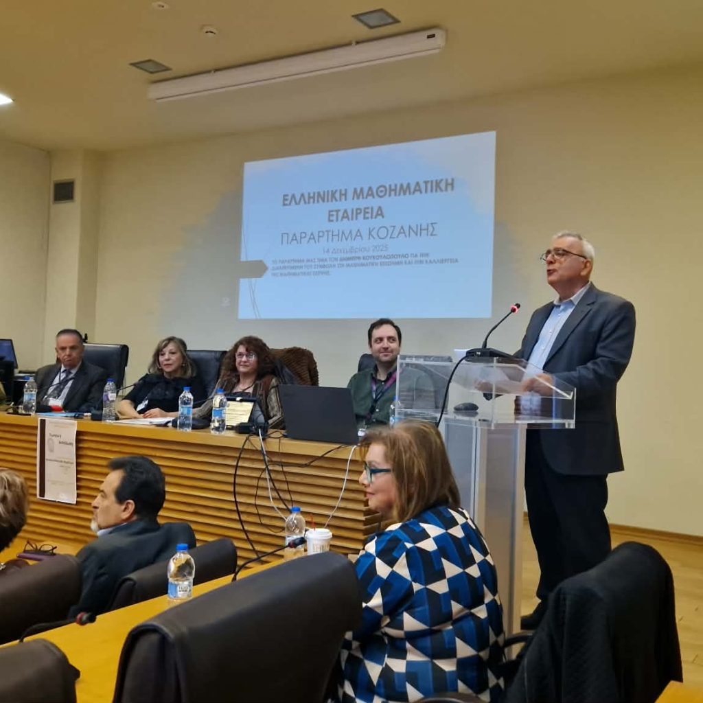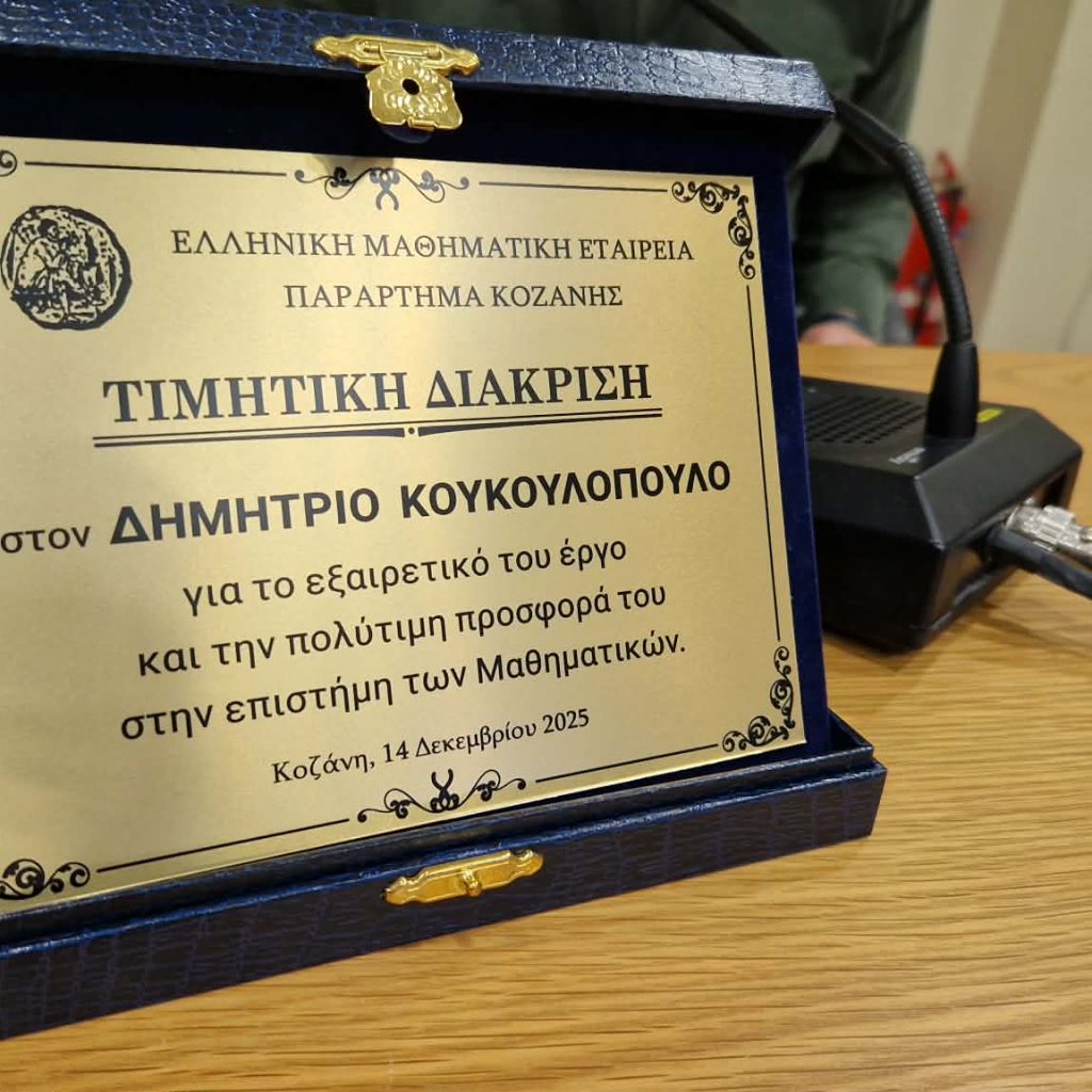 Γέμισε το Κοβεντάρειο το πρωί της Κυριακής για την άκρως επιτυχημένη τιμητική εκδήλωση της Ελληνικής Μαθηματικής Εταιρίας-Παράρτημα Κοζάνης, στον Δημήτρη Κουκουλόπουλο, τον σπουδαίο αυτό κοζανίτη μαθηματικό, ο οποίος διαπρέπει στο εξωτερικό, έχοντας, μάλιστα, λύσει, πριν από μερικά χρόνια, μια μαθηματική εικασία 78 ετών.