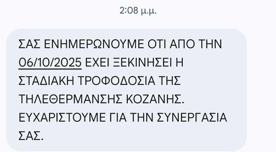 Για πρώτη φορά η ΔΕΥΑΚ ενημερώνει με sms τους καταναλωτές ότι ξεκίνησε σταδιακά η λειτουργία της τηλεθέρμανσης: