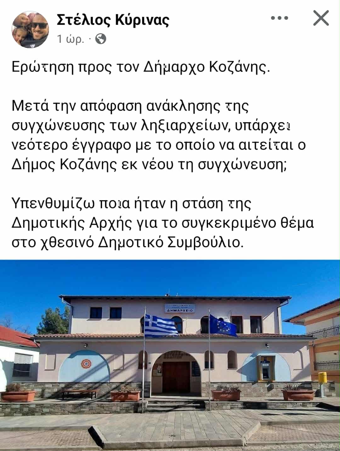 Ερώτηση προς τον Δήμαρχο Κοζάνης.
