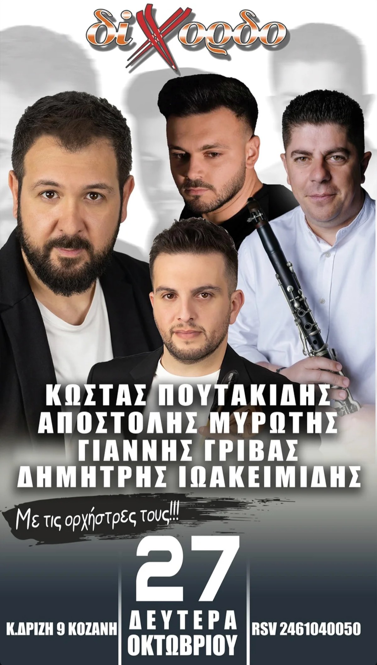 Οι Πουτακίδης, Γρίβας, Μυρωτης και Ιωακειμίδης σε μια μοναδική βραδιά παραμονή 28ης Οκτωβρίου στο “Διχορδο” live