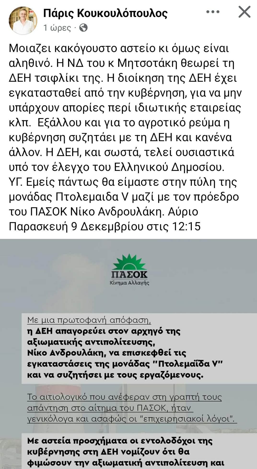 Kozanimedia: Πάρις Κουκουλόπουλος – “Η ΝΔ του κυρίου Μητσοτάκη θεωρεί τη ΔΕΗ τσιφλίκι της-Εμείς θα είμαστε αύριο, Παρασκευή, στην πύλη της Πτολεμαϊδα V με τον Νίκο Ανδρουλάκη”