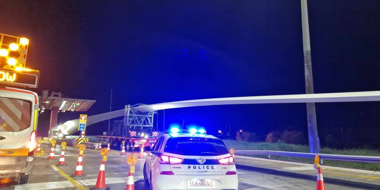 Με μια πολύ μεγάλη και συντονισμένη “επιχείρηση” της Εγνατίας Οδού Α.Ε., της Αστυνομίας και μεγάλης ιδιωτικής εταιρίας αιολικών πάρκων έκλεισαν τα διόδια Πολυμύλου στις 5:30 το πρωί της Δευτέρας για να περάσουν τα τεράστια φορτηγά με τα γιγαντιαία “πτερύγια” από ανεμογεννήτριες!