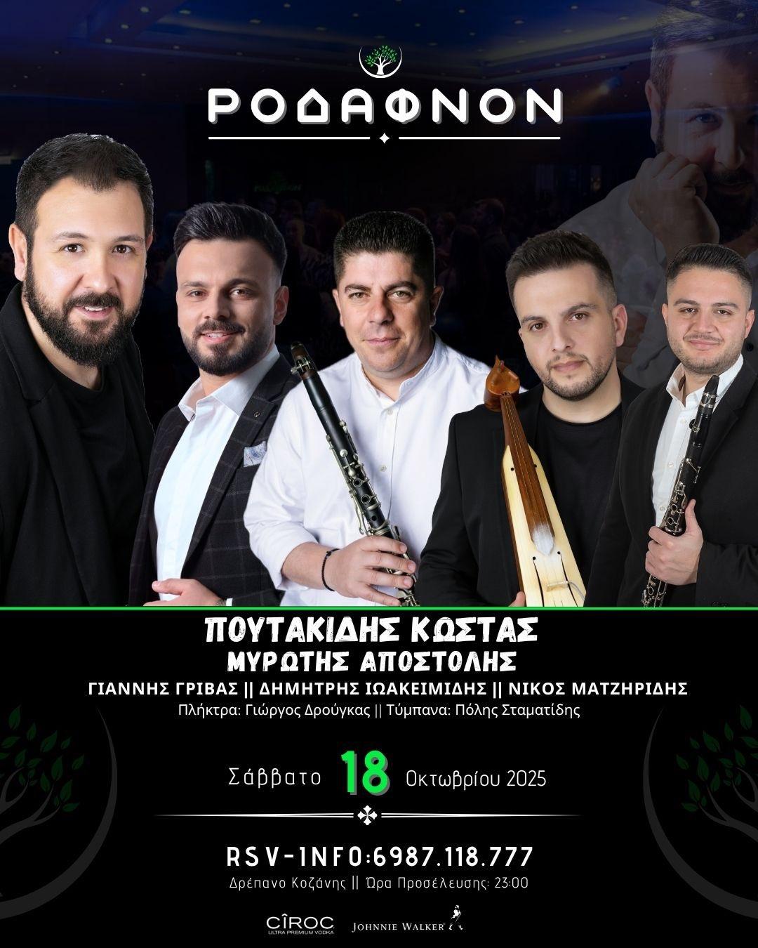 kozanimedia: Σάββατο βράδυ στο “Ροδάφνον” με Πουτακίδη – Γρίβα σε ένα μεγάλο γλέντι