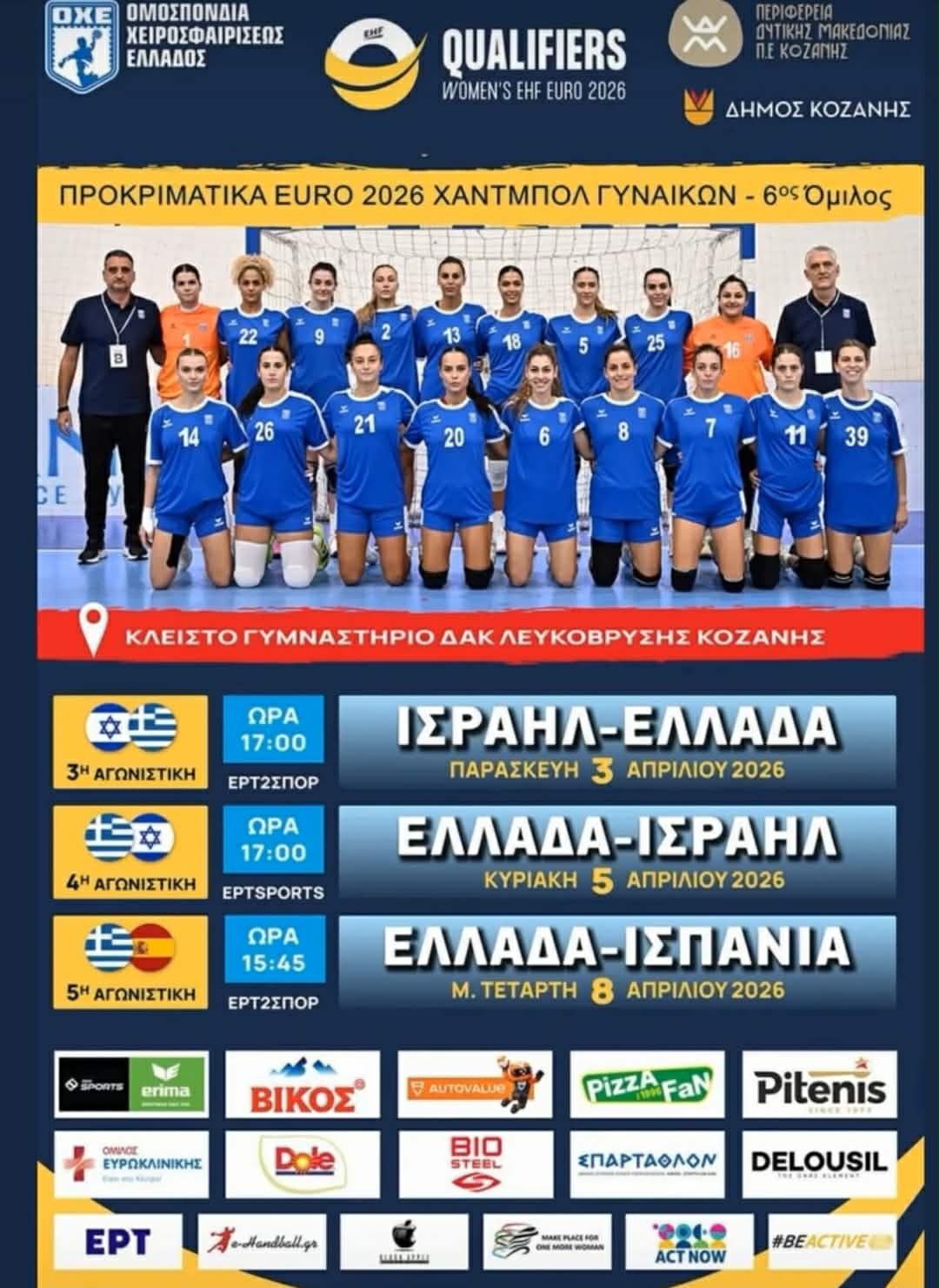 Kozanimedia: “Σιωπηλοί”, διπλοί αγώνες των εθνικών ομάδων χάντμπολ γυναικών Ελλάδας-Ισραήλ στη Λευκόβρυση-Πολύ αυστηρά μέτρα ασφαλείας στο ξενοδοχείο και στο γήπεδο-Χωρίς θεατές τα παιχνίδια