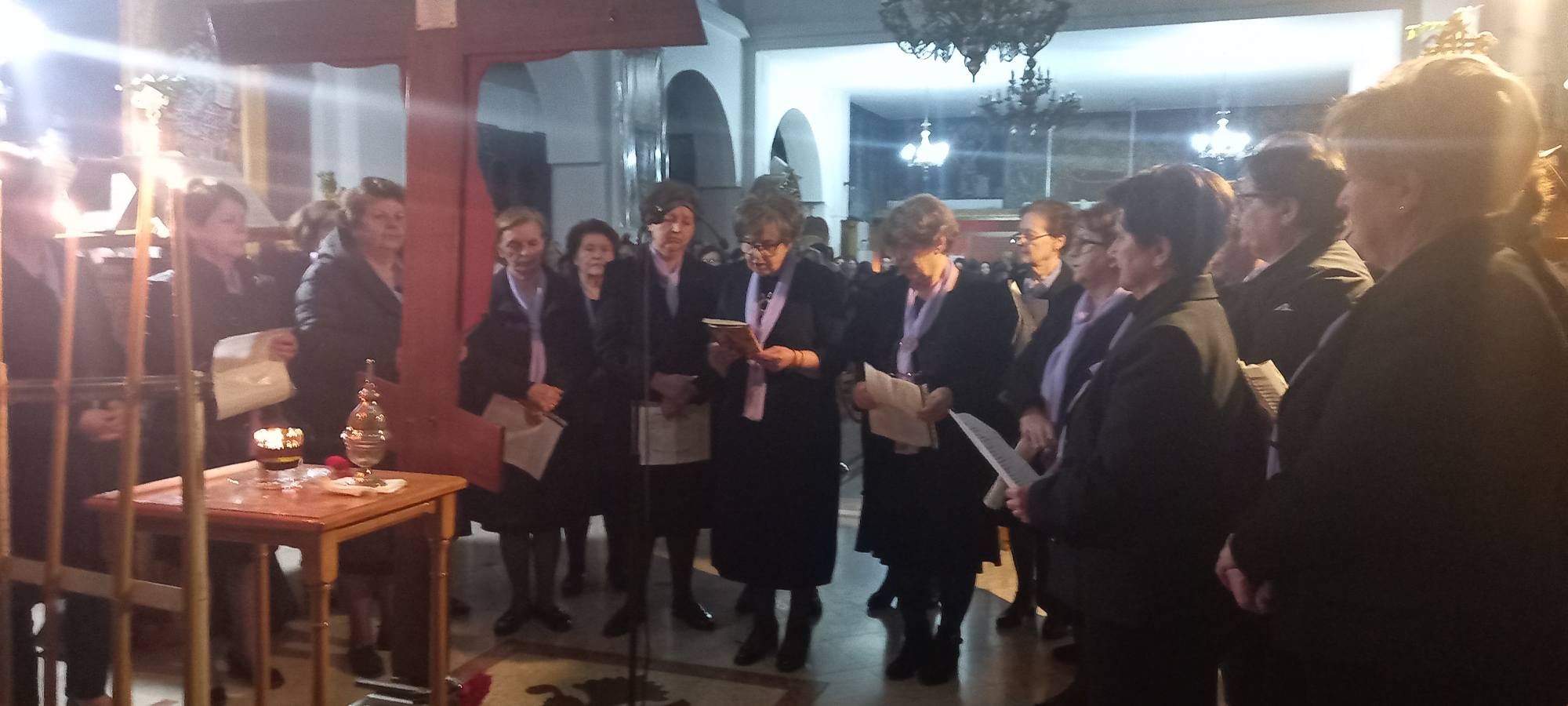 Κρόκος Κοζάνης: Το «Μοιρολόι της Παναγίας»- Γυναίκες της Βυζαντινής Χορωδίας ψάλλουν μπροστά στον Εσταυρωμένο – Βίντεο