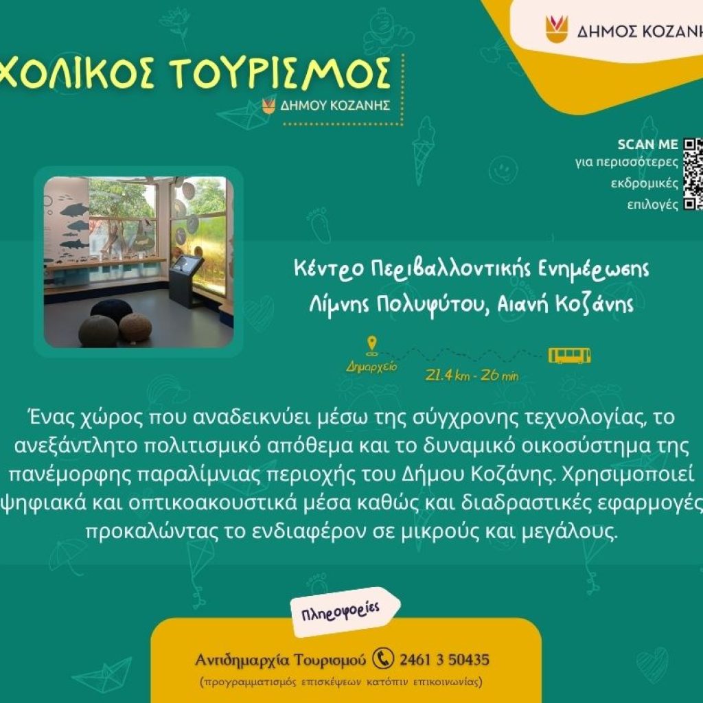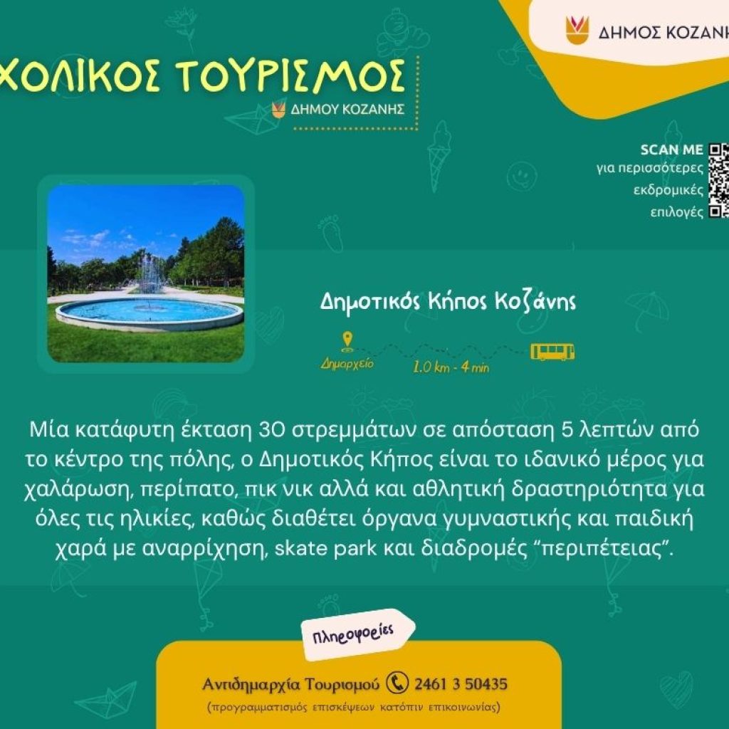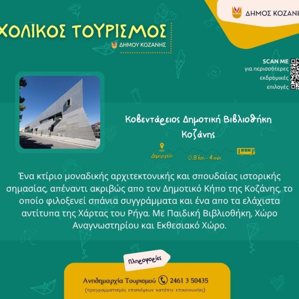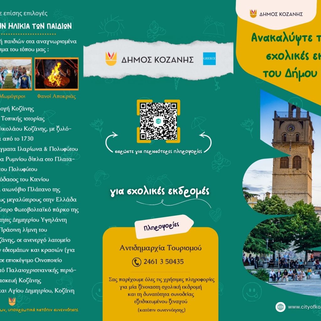 Ένα καλαίσθητο φυλλάδιο για τον σχολικό τουρισμό ετοίμασε ο Δήμος Κοζάνης, το οποίο διανεμήθηκε, αρχικά, στους δημοτικούς συμβούλους που βρέθηκαν το απόγευμα της Τετάρτης στο Κοβεντάρειο.