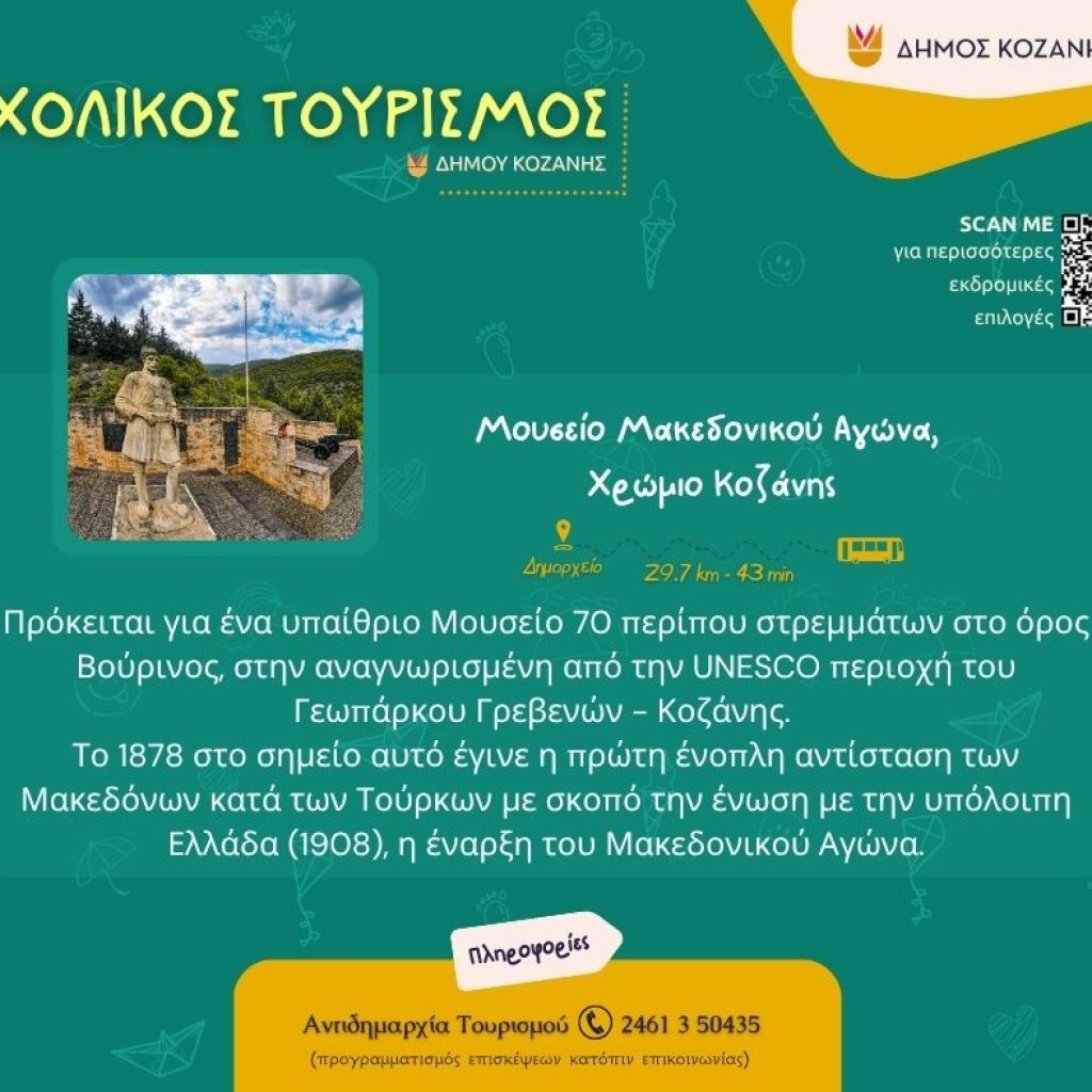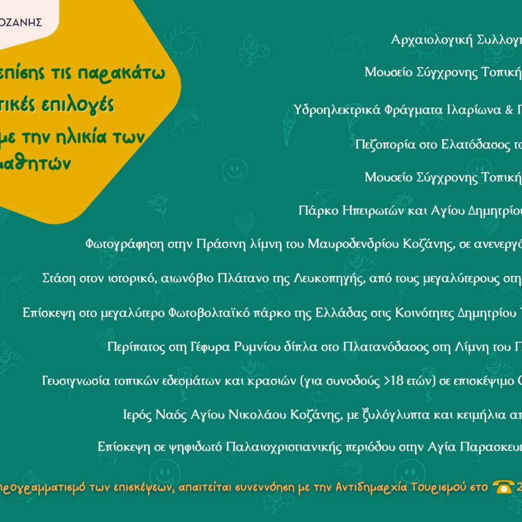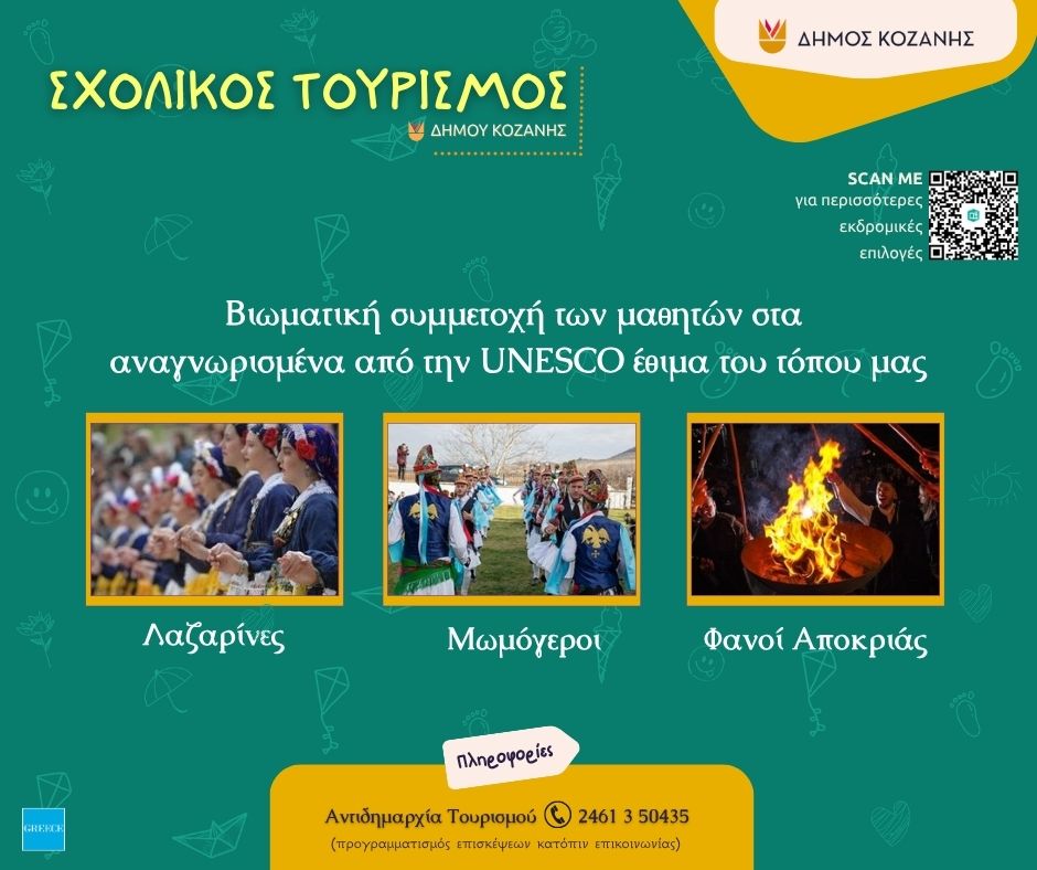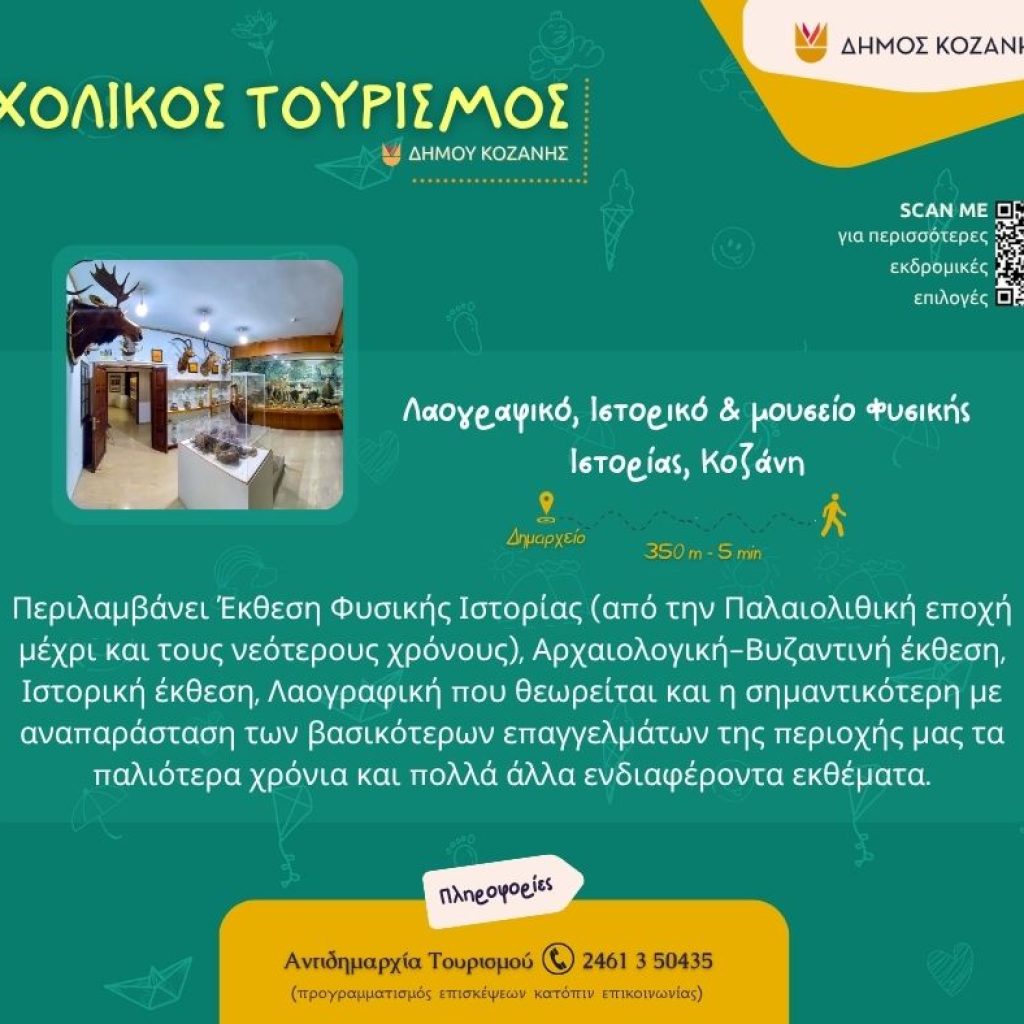 Ένα καλαίσθητο φυλλάδιο για τον σχολικό τουρισμό ετοίμασε ο Δήμος Κοζάνης, το οποίο διανεμήθηκε, αρχικά, στους δημοτικούς συμβούλους που βρέθηκαν το απόγευμα της Τετάρτης στο Κοβεντάρειο.