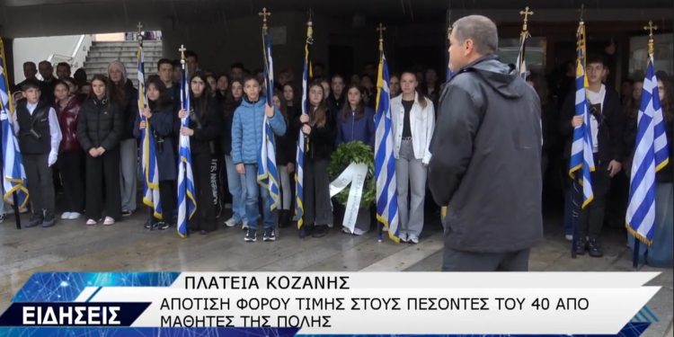Όλοι οι σημαιοφόροι των σχολείων της Κοζάνης στη “Γιορτή της Σημαίας” – Υπό βροχή η κατάθεση στεφάνων και ο εθνικός ύμνος