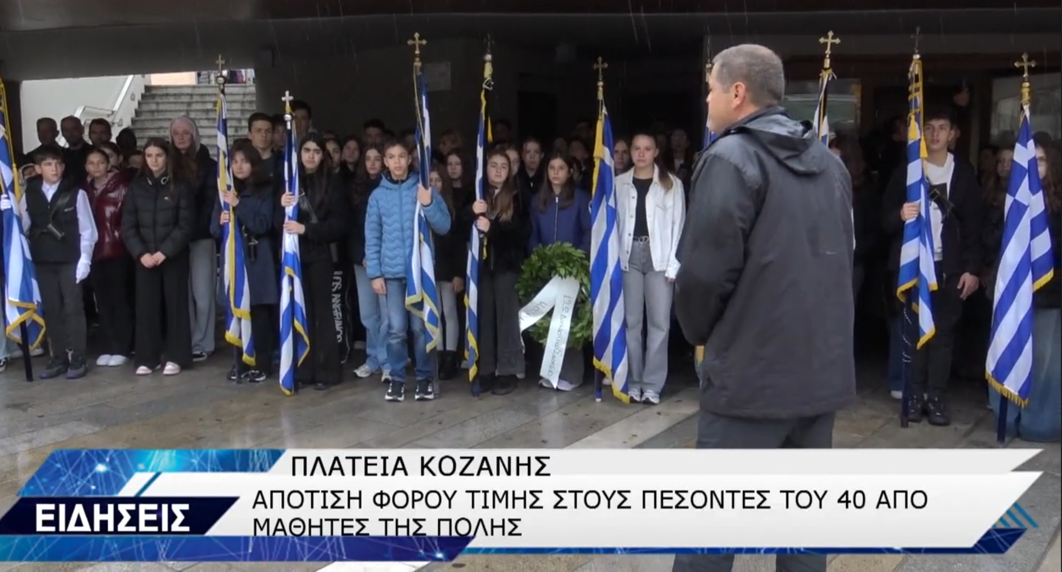 Kozanimedia: Όλοι οι σημαιοφόροι των σχολείων της Κοζάνης στη “Γιορτή της Σημαίας” – Υπό βροχή η κατάθεση στεφάνων και ο εθνικός ύμνος – Βίντεο