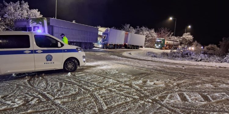 Περίπου στις 7 το απόγευμα της Τετάρτης και μέσα σε ασθενή χιονόπτωση, “κόλλησε” νταλίκα μέσα στα χιόνια, στη διασταύρωση Δεσκάτης και στο δρόμο προς Καλαμπάκα.