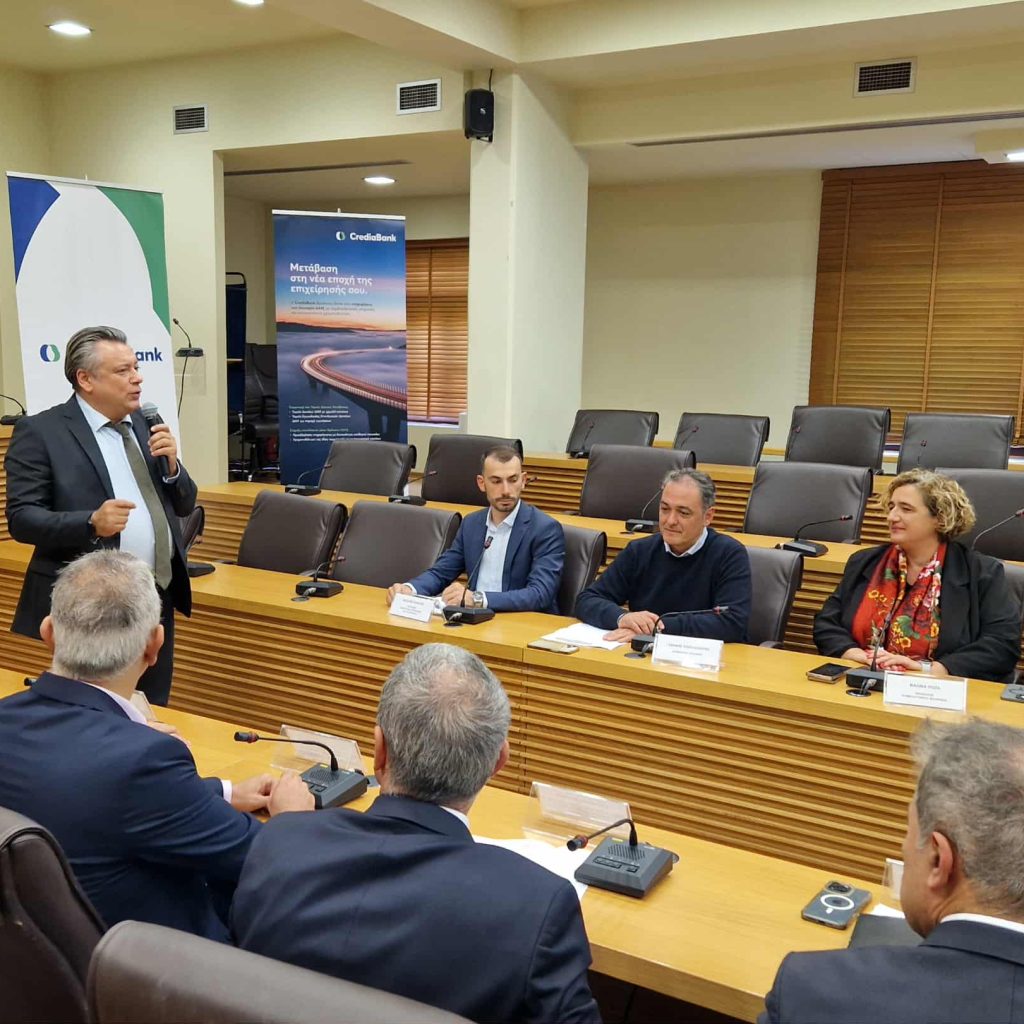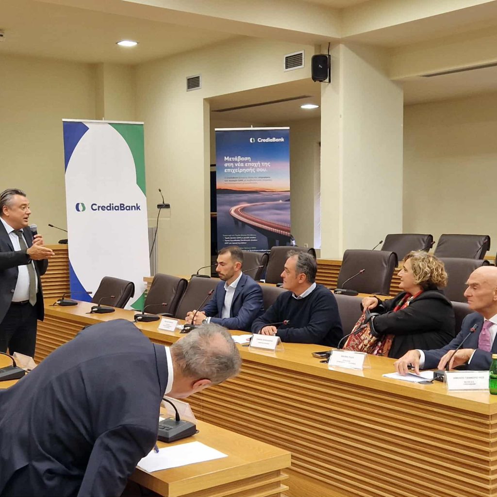 Η CrediaBank, με σταθερή δέσμευση στη βιώσιμη επιχειρηματικότητα, υποστήριξε ενεργά την ημερίδα που διοργάνωσε με επιτυχία νωρίς το απόγευμα της Τετάρτης στο Κοβεντάρειο το Εμπορικό & Βιομηχανικό Επιμελητήριο Κοζάνης με θέμα «Ενσυναίσθηση και Καινοτομία στη Μετάβαση με το βλέμμα στο αύριο: Προοπτικές και σύγχρονη Τραπεζική σε εφαρμογή».