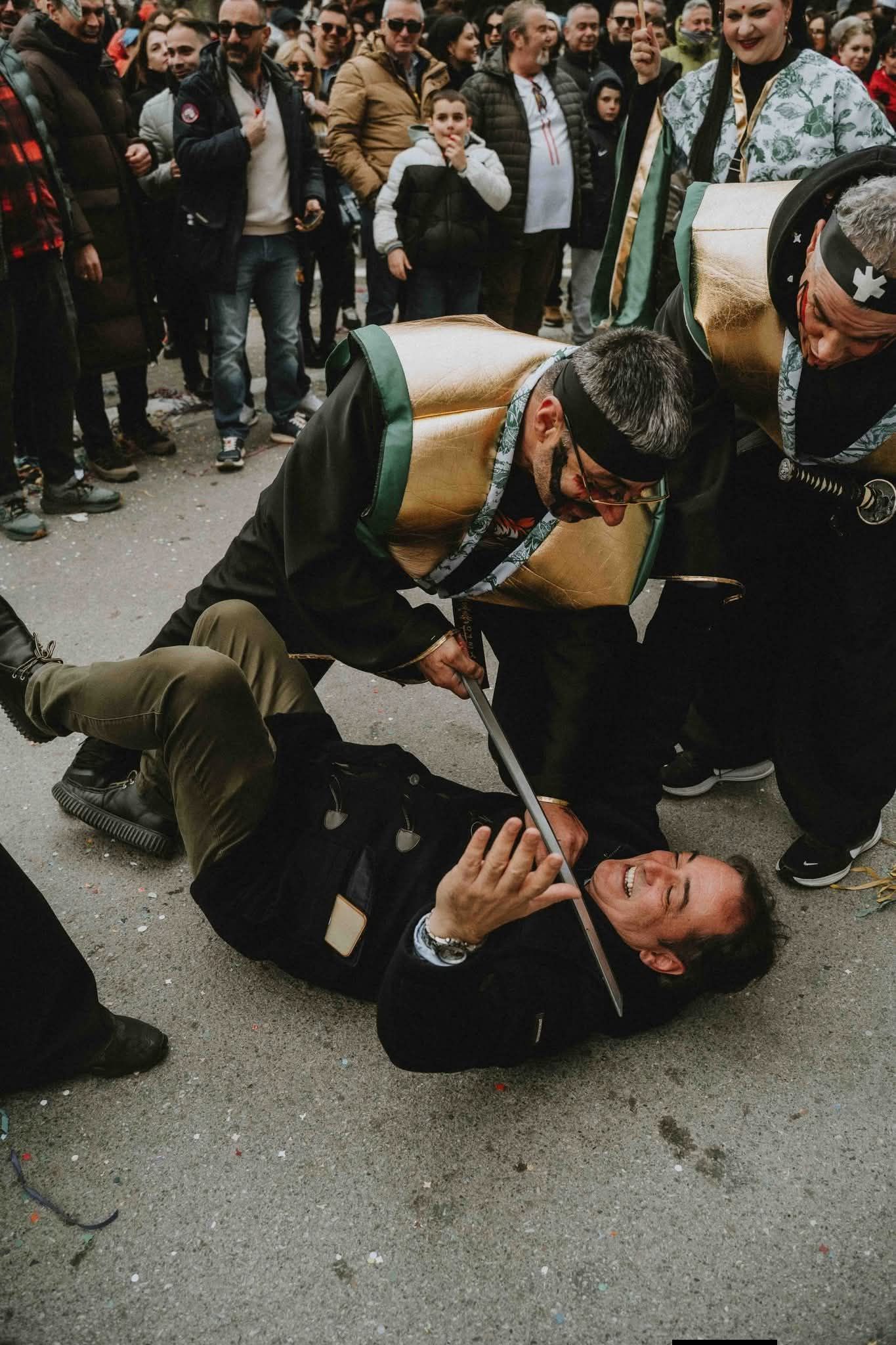 Με δηκτική ανάρτηση στο Facebook και φωτογραφία με…σαμουράι να βάζει το μαχαίρι στο λαιμό του δημάρχου Κοζάνης (στιγμιότυπο από την αποκριάτικη παρέλαση), ο ανεξάρτητος δημοτικός σύμβουλος Δημήτρης Κορωνίδης γράφει: “