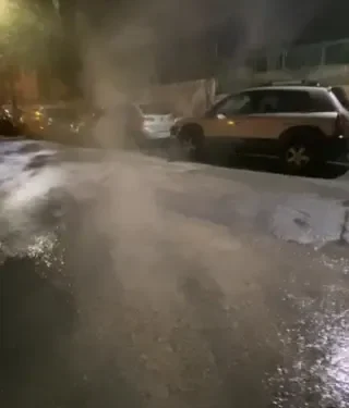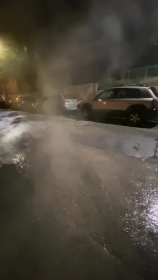 Nέα διαρροή σημειώθηκε στο δίκτυο τηλεθέρμανσης, αυτή τη φορά έξω από το 2ο Δημοτικό Σχολείο Κοζάνης, προς το πάρκο του Αγίου Δημητρίου, με τα βίντεο να έχουν ώρα λήψης στις 2 το πρωί της Παρασκευής.