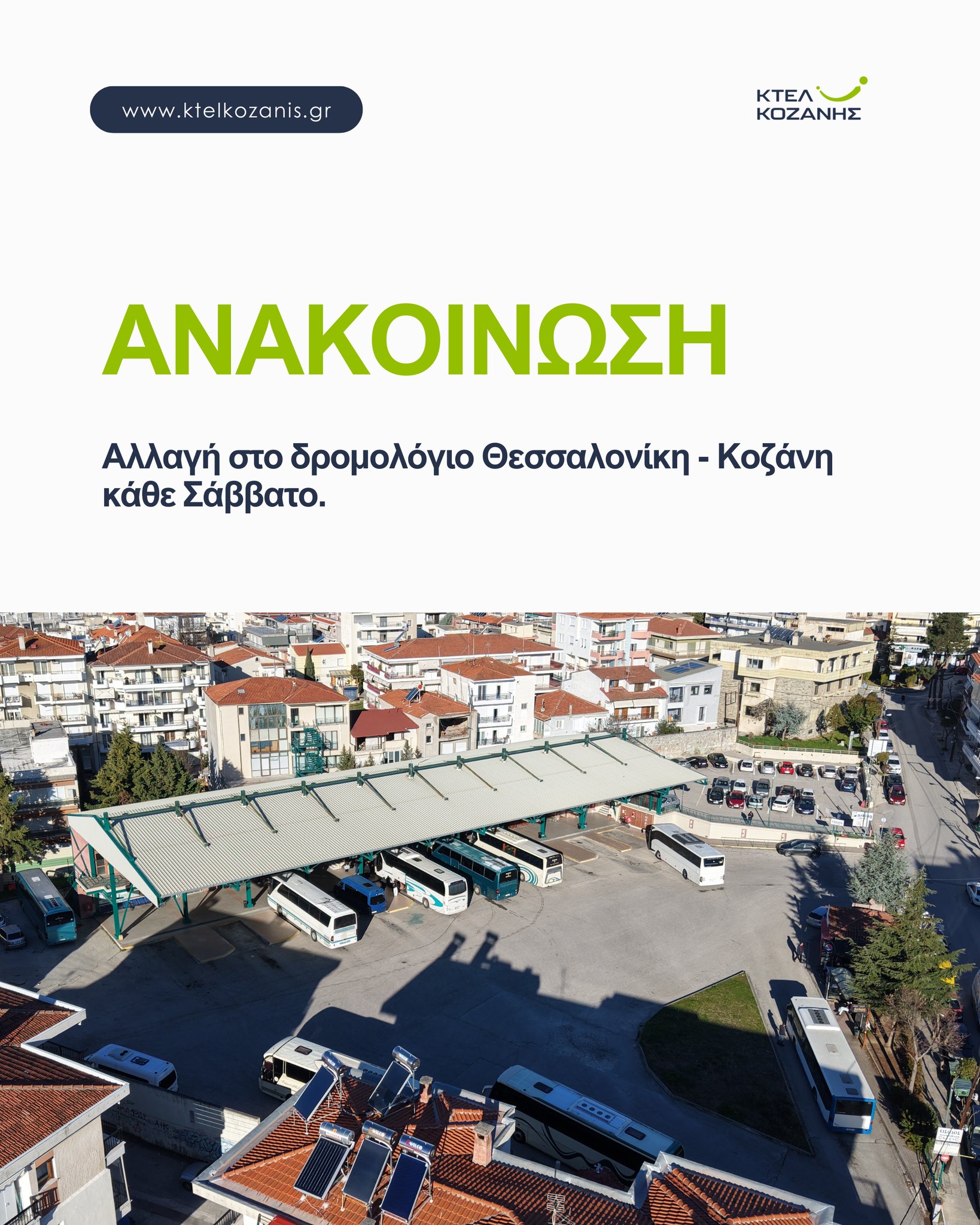 Αν προγραμματίζετε το ταξίδι σας από τη Θεσσαλονίκη προς την Κοζάνη το Σάββατο, σημειώστε μια μικρή αλλά σημαντική τροποποίηση στην ώρα αναχώρησης.