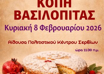 Το Διοικητικό Συμβούλιο του Πολιτιστικού Συλλόγου Ερμακιάς "ΤΟ ΦΡΟΥΡΙΟ" σας προσκαλεί στην εκδήλωση κοπής Βασιλόπιτας το Σάββατο 31 Ιανουαρίου 2026 και...