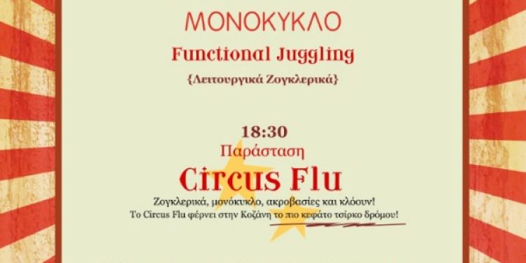 Παιδιά, γονείς, παππούδες… ώρα για Τσίρκο! Ζογκλερικά, μονόκυκλο, ακροβασίες και κλόουν — και… μάντεψε ποιοι παίζουν τον πιο σημαντικό ρόλο; Εσείς! Το Circus Flu φέρνει στη Κοζάνη το πιο κεφάτο τσίρκο δρόμου, όπου τα γέλια μπλέκονται με τις εκπλήξεις και η χαρά γίνεται οικογενειακή υπόθεση!