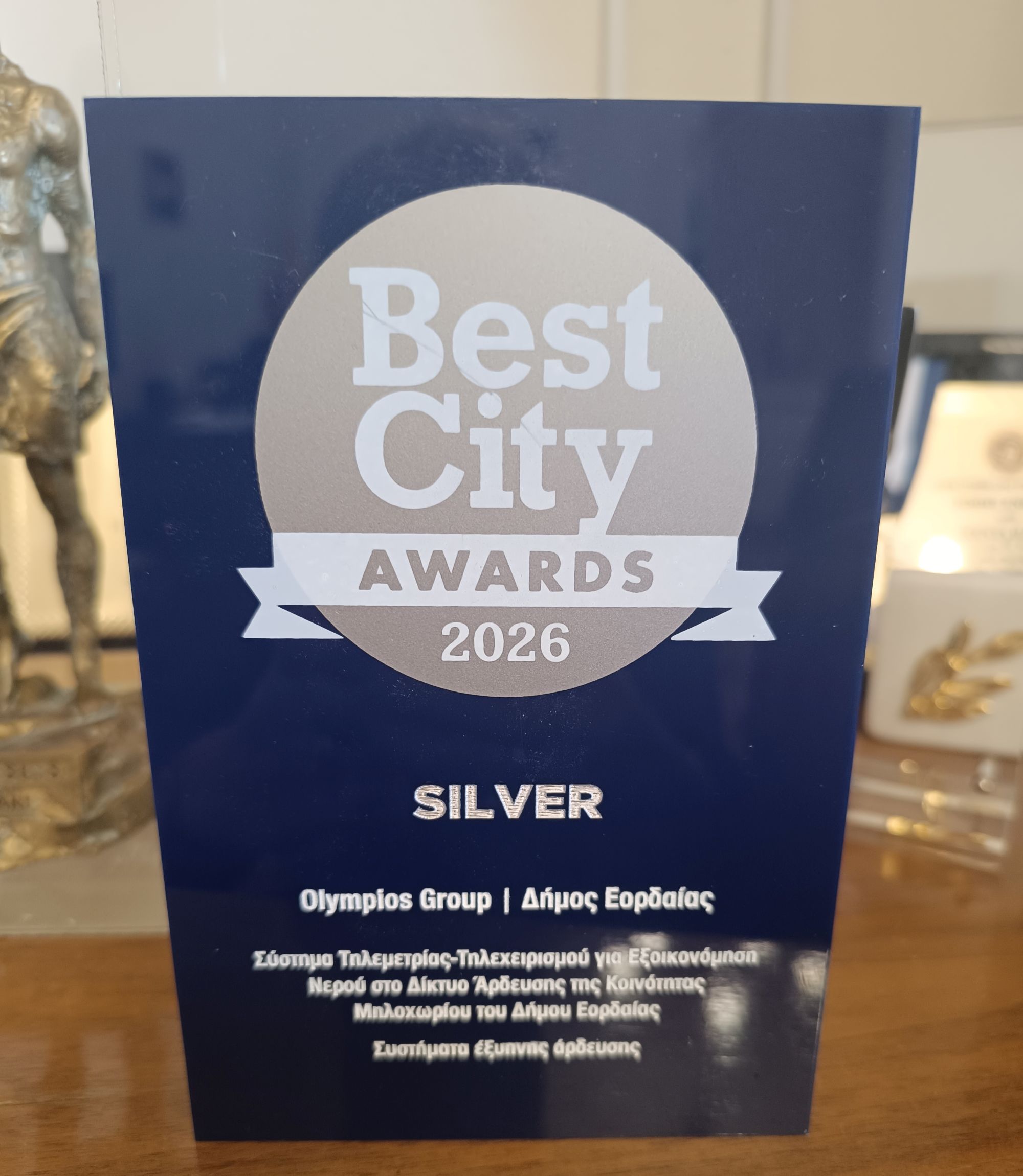 Ο Δήμος Εορδαίας, σε συνεργασία με την Olympios Group, απέσπασε τη σημαντική διάκριση SILVER Award στην κατηγορία Συστήματα Έξυπνης Άρδευσης στα Best City Awards 2026, για το έργο «Σύστημα Τηλεμετρίας Τηλεχειρισμού για Εξοικονόμηση Νερού στο Δίκτυο Άρδευσης της Κοινότητας Μηλοχωρίου».