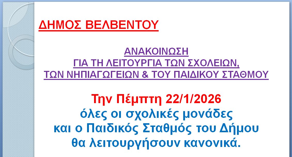 Tι θα γίνει με τη λειτουργία των σχολείων την Πέμπτη στο Βελβεντό