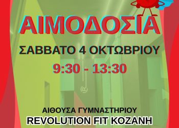 To Σάββατο 4 Οκτωβρίου 2025 από τις 09:30 – 14:00 (προσέλευση μέχρι 13:30) στο χώρο του γυμναστηρίου Revolution Fit (Ματιώς Σακελλαρίου 2) με την Αιμοδοσία του Γ.Ν. Κοζάνης. ΑΘΛΗΤΙΣΜΟΣ-ΥΓΕΙΑ-ΑΙΜΟΔΟΣΙΑ Φροντίζουμε ...