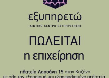 ΠΩΛΕΙΤΑΙ η επιχείρηση ΕΞΥΠΗΡΕΤΩ ΙΚΕ στην πλατεία Λασσάνη 15, στην Κοζάνη με όλο τον εξοπλισμό και εξασφαλισμένη πελατεία. Για πληροφορίες τηλ. 6940451485