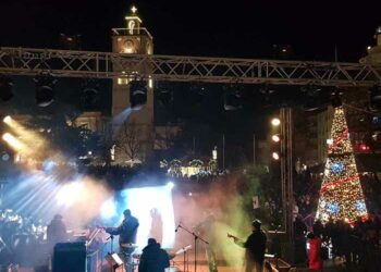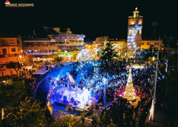 Η συναυλία με τον Γιώργο Παπαδόπουλο στη γεμάτη κόσμο κεντρική πλατεία Κοζάνης, στην εκδήλωση για τη φωταγώγηση του χριστουγεννιάτικου δέντρου:
