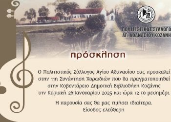 Ο Ελληνικός Ορειβατικός Σύνδεσμος (ΕΟΣ) Κοζάνης προσκαλεί μέλη και φίλους στην καθιερωμένη κοπή της Βασιλόπιτας που θα πραγματοποιηθεί την ερχόμενη Κυριακή 26 Ιανουαρίου 2025 στα γραφεία του συνδέσμου στον Ψηλό ...