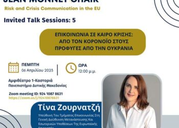 Την Πέμπτη, 6 Απριλίου 2023 και ώρα 12:00, η Έδρα Jean Monnet στην Επικοινωνιακή Διαχείριση Κινδύνου και Κρίσεων στην Ευρώπη υποδέχεται την Τίνα Ζουρνατζή, Υπεύθυνη Τμήματος Επικοινωνίας στη Γενική Διεύθυνση ...