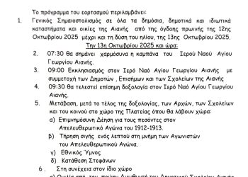 ΔΗΜΟΤΙΚΗ ΚΟΙΝΟΤΗΤΑ ΑΙΑΝΗΣ ΙΣΤΟΡΙΚΗ ΕΔΡΑ ΔΗΜΟΥ ΚΟΖΑΝΗΣ ΕΚΔΗΛΩΣΗ ΜΝΗΜΗΣ ”113η Επέτειος Απελευθέρωσης της Αιανής από τον Τουρκικό ζυγό στις 13 Οκτωβρίου 1912” Π Ρ Ο Γ Ρ Α Μ Μ ...