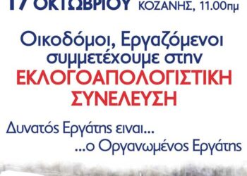 Εκλογοαπολογιστική Συνέλευση Συνδικάτου Οικοδόμων Κοζάνης την Κυριακή 17 Οκτωβρίου στο Εργατικό Κέντρο Κοζάνης
